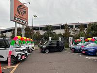 店頭には展示車両と店舗側にはタイヤも豊富に展示しています。