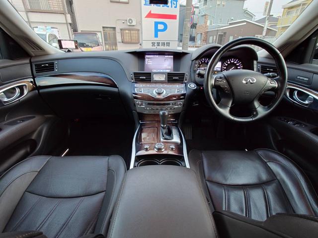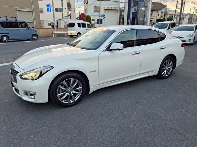 フーガハイブリッド ベースグレード HIDヘッドライト・電動半革シート・HDDナビ・DVD再生・Bluetooth接続・サイド・バックカメラ・OPエアロフォルムバンパー・リアスポ・追従クルコン・ETC