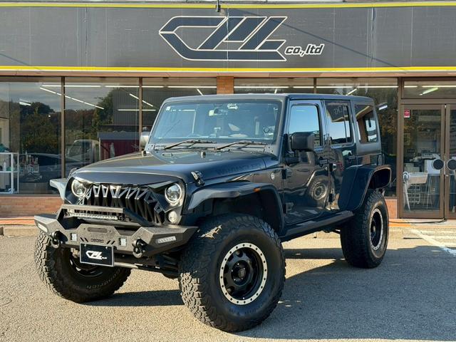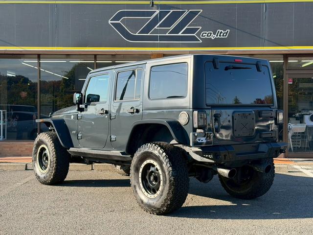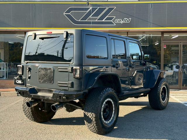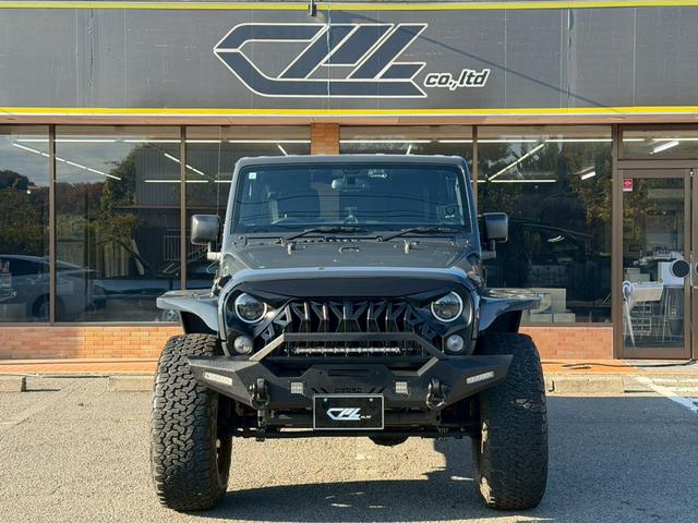 ジープ・ラングラーアンリミテッド サハラ リフトアップ 社外バンパー オバフェン ボンネット サイドステップ テール FUEL20AW マッドタイヤ GIBSONマフラー F.S.Rモニター