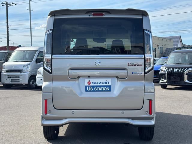 スペーシアカスタム ハイブリッドXSターボ 届出済未使用車 4WD 9インチ全方位モニター付メモリーナビ フルセグTV HDMI スズキセーフティーサポート スズキコネクト バイザー フロアマット付