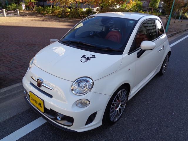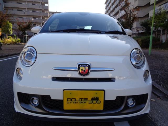 アバルト595 ツーリズモ 1オーナー 禁煙車 後期モデル アイスホワイト 165PS パドルシフト TFT液晶 純正17AW 茶革 2DINナビ フルセグ ETC アルミペダル
