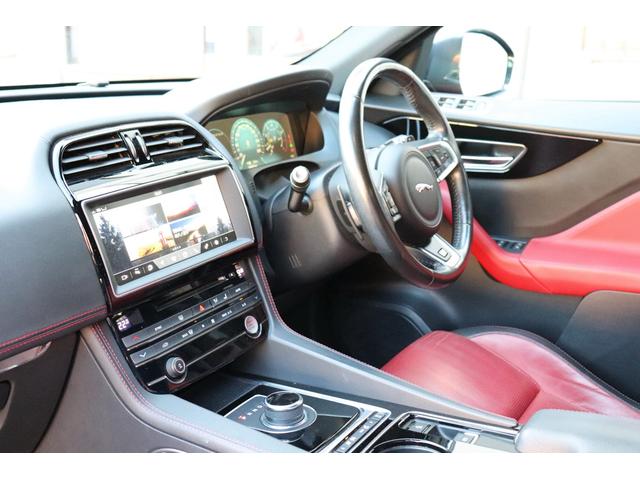 - Fペイス R−スポーツ 3リッタースーパーチャージャー サンルーフ 黒×赤コンビレザー 純正ナビ シートヒーター パワーシート