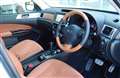 これに対してSUV感覚のデザインを採用したクロスオーバー7はけっこう存在感のあるクルマになっている。前後のバンパーやオーバーフェンダー、ルーフレールやリヤスポイラー、新デザインのアルミホイールなどが特徴だ。茶系のタン色を使った合成皮革のシートを採用した内装などど合わせ、質感と存在感を高めている。