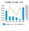 高速道を使用しない近郊ドライブでは25km/Lくらい。