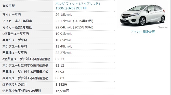 『e燃費の燃費記録』ホンダ フィット 2013年モデル しなじぃさんのレビュー・評価画像2/3