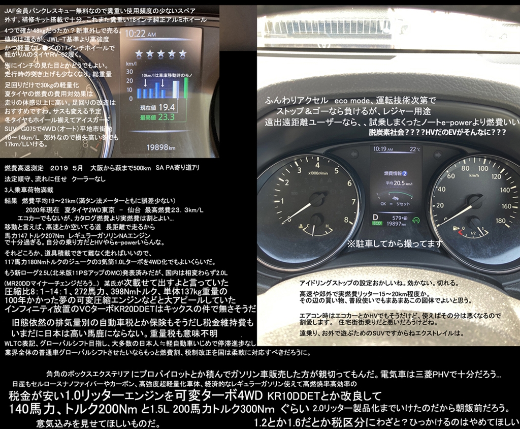 2019長距離実燃費結果 ※写真燃費計は今年 エアコン切 今年も北陸豪雪 EVでいいの?