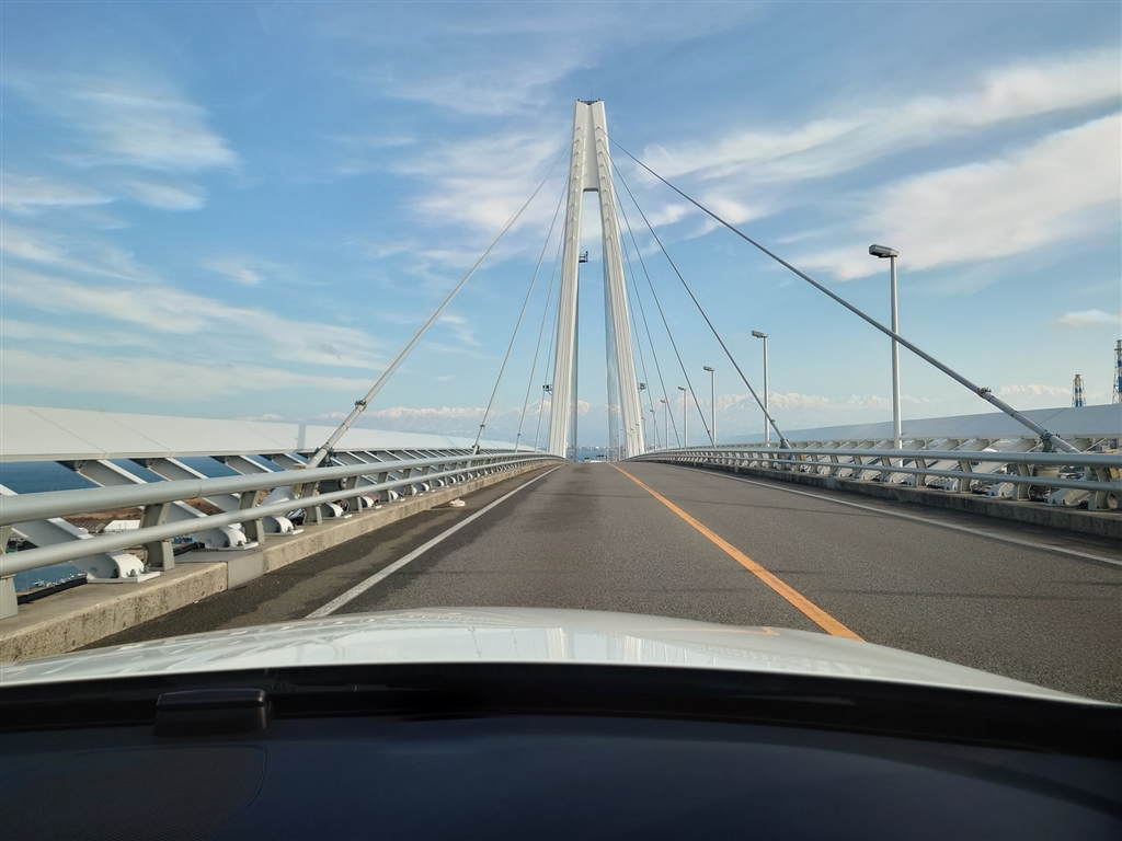 ? 走行性能でも記載している通勤コースの新湊大橋から眺望する立山連峰です。