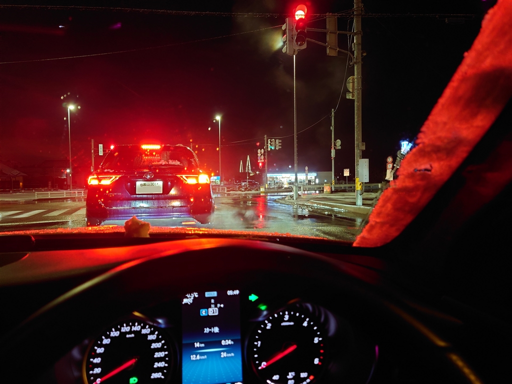 ? 雪道の信号待ち、帰宅中の1枚です。