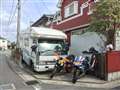 前車はキャンピングカー |