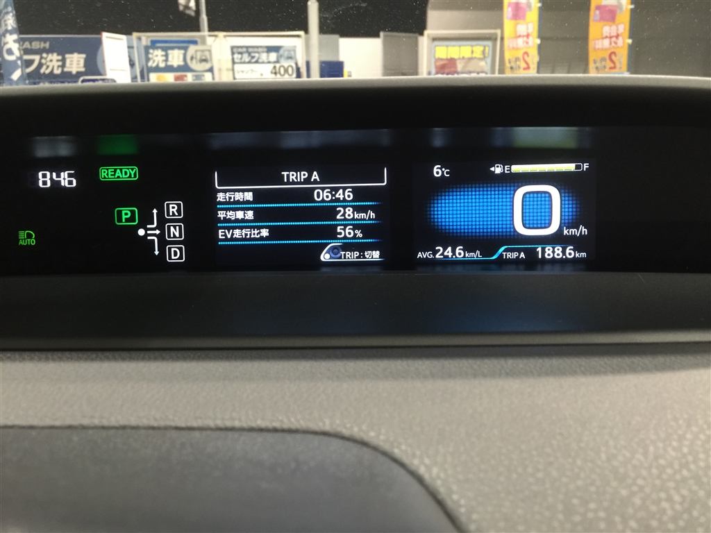満タン法では28.1km/Lです(6.7Lしか給油できなかった)
