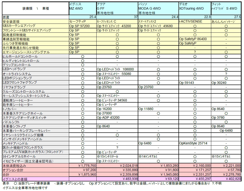 『装備比較』スズキ イグニス 2016年モデル nyutarouさんのレビュー・評価画像1/1