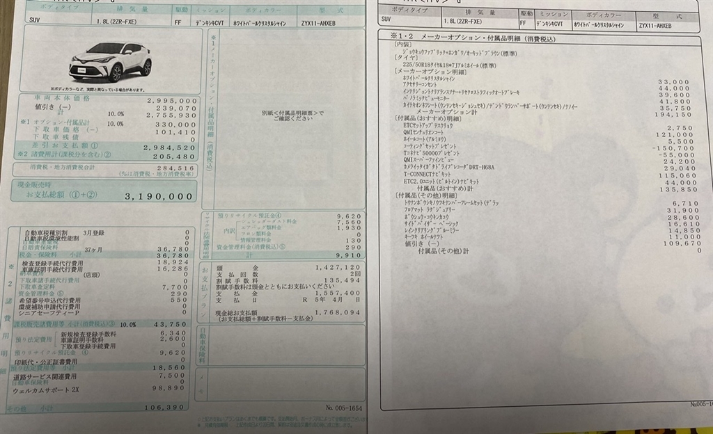 『見積書』トヨタ C-HR 2016年モデル ミケんちゅさんのレビュー・評価画像1/1