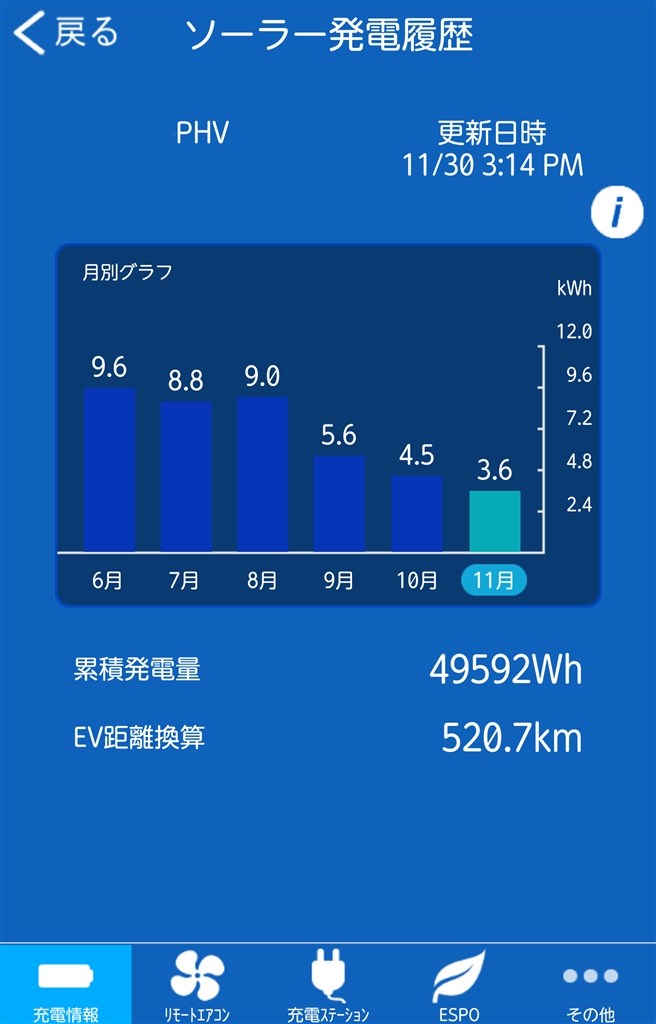 『ソーラー充電の推移』トヨタ プリウスPHV 2017年モデル プレミアトップさんのレビュー・評価画像2/2