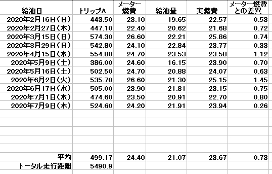 約5500km走行後の燃費データ