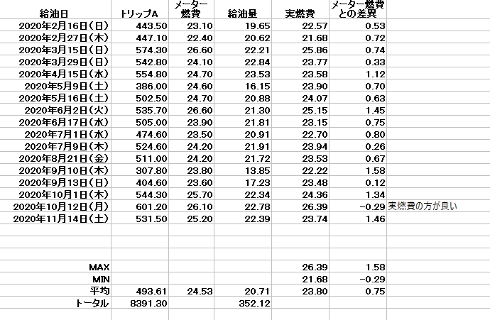 高速を使った遠乗りで実燃費の方がメーター燃費を上回りました