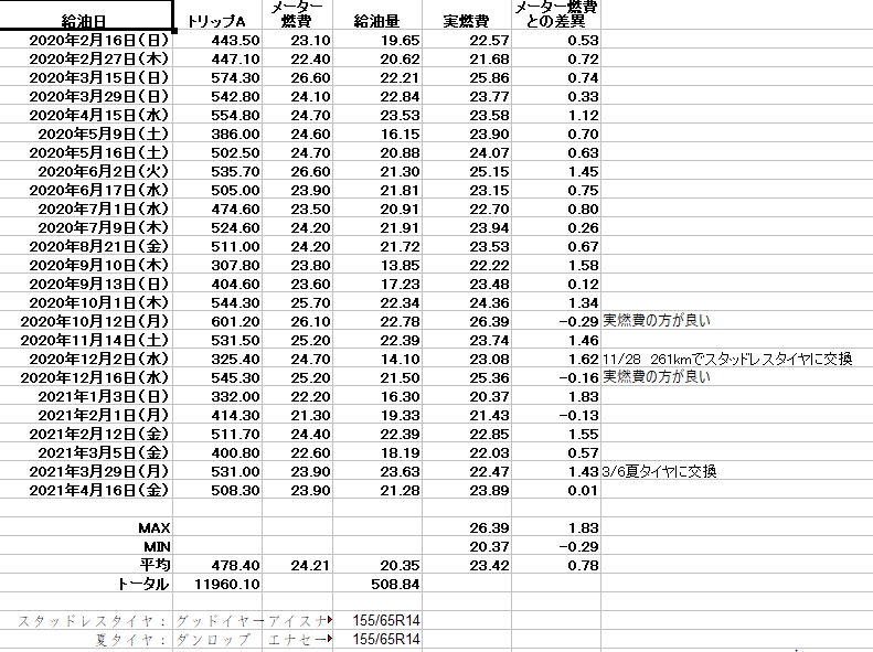 約12000kmの燃費データの追加です(オイルは1年点検で1回交換してます)