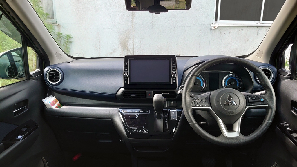 ek x -8- シートなども黒と紺で統一。ピアノブラックも多めでコントラスト感高い。
