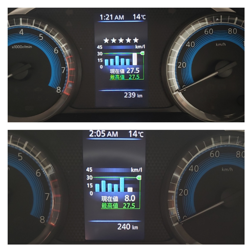 27.5km/Lをマークした直後、スーパーから自宅までの1キロで8km/L!