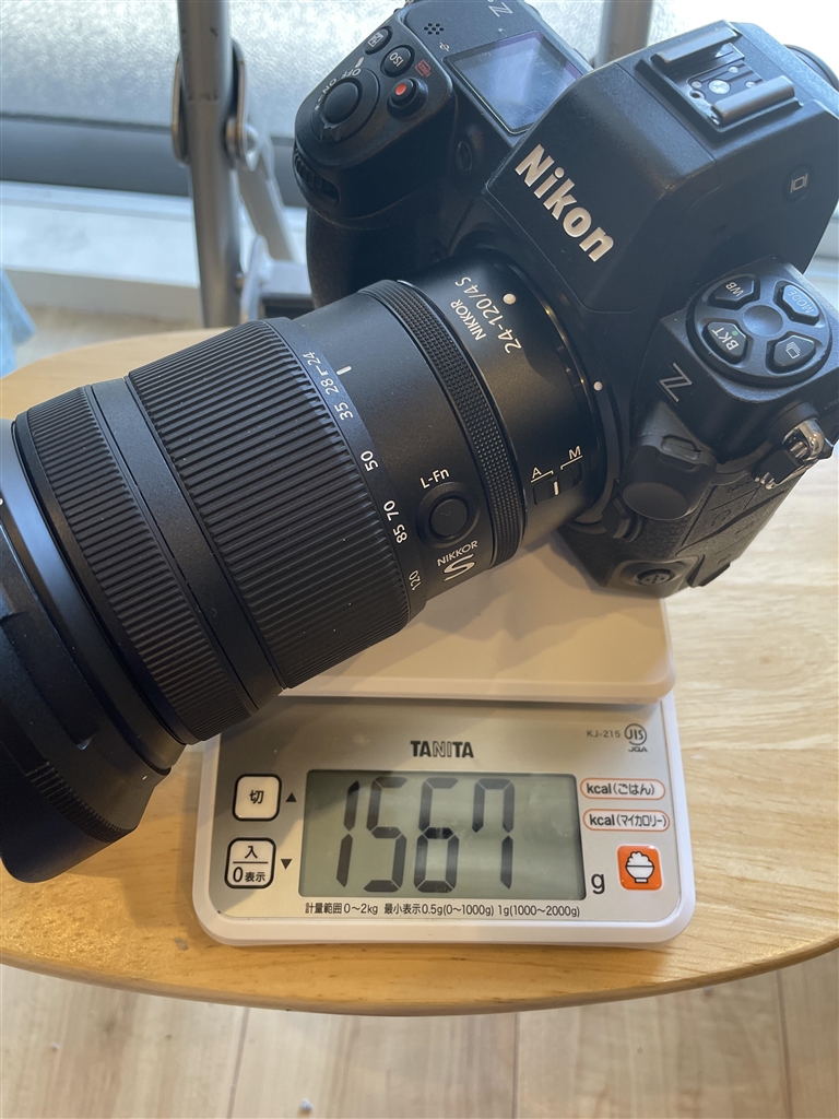 Z8に取り付けた時の実計測重量。レンズキャップ無し。フィルター無し。