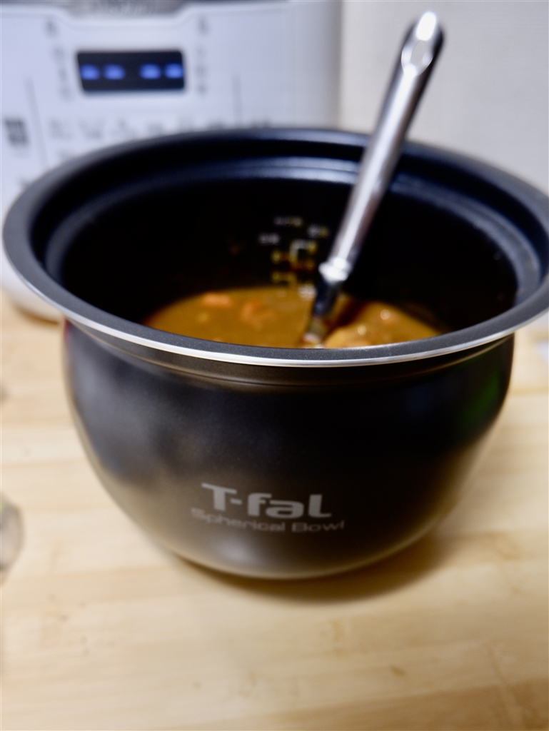 丸い壺のようにも見える内なべ。中には試作のカレー。