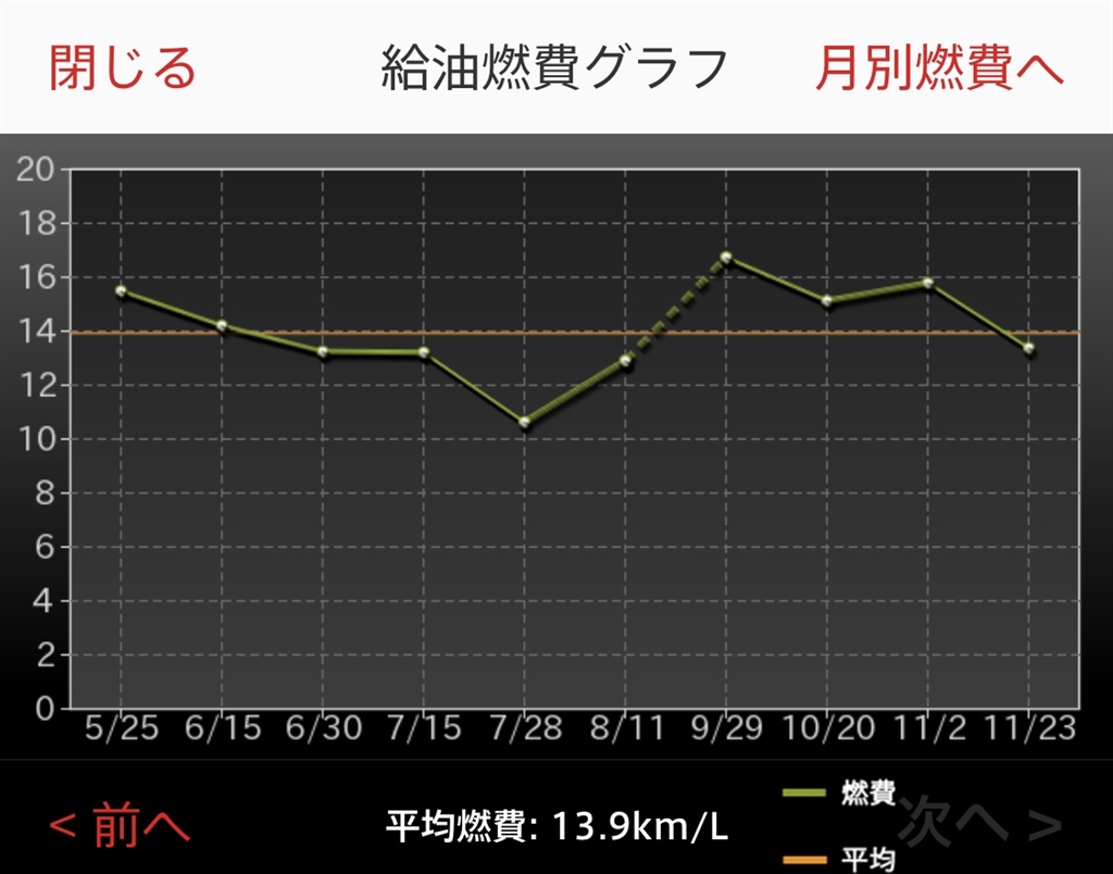 参考)検証1の往路 ほぼ高速での燃費(八王子から談合坂SA)