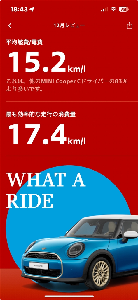 『昨年12月の燃費です』ミニ MINI 5 DOOR 2024年モデル 令和の夢さんのレビュー・評価画像1/1