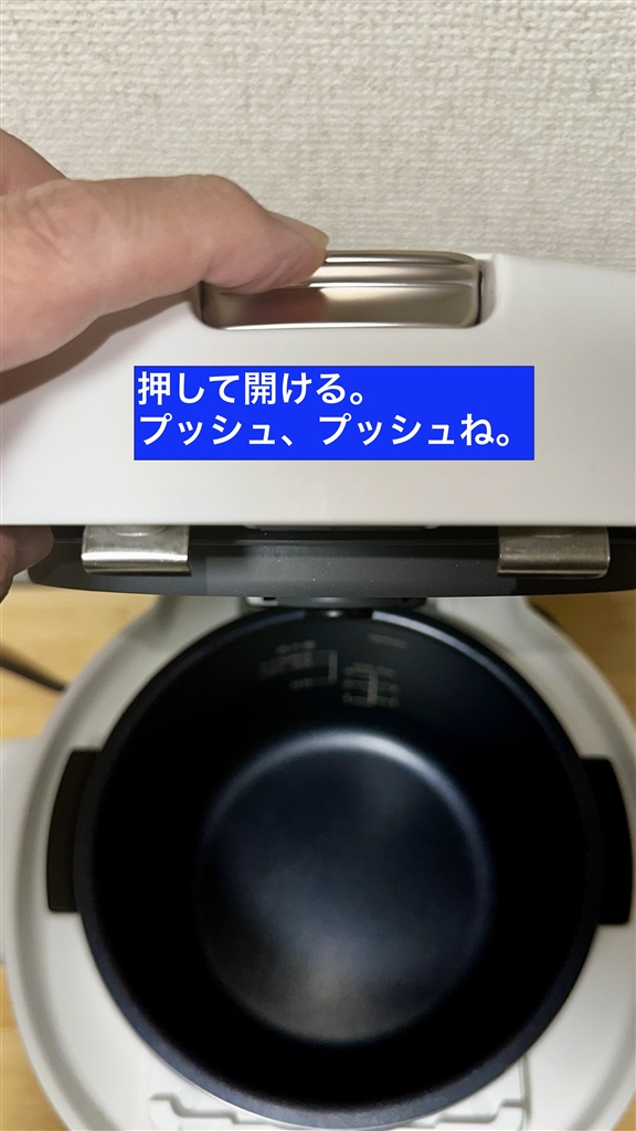 フタは押し開け。鍋を横から押すことはないので、違和感が拭えない。