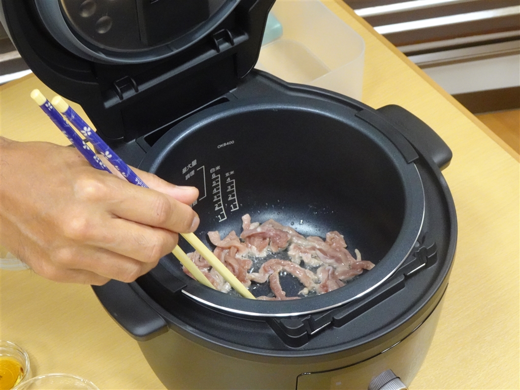 『追加された「炒め」メニューの調理デモ』タイガー魔法瓶 TIGER COOKPOT COK-B400-KM [マットブラック] 神野恵美さんのレビュー・評価画像5/6