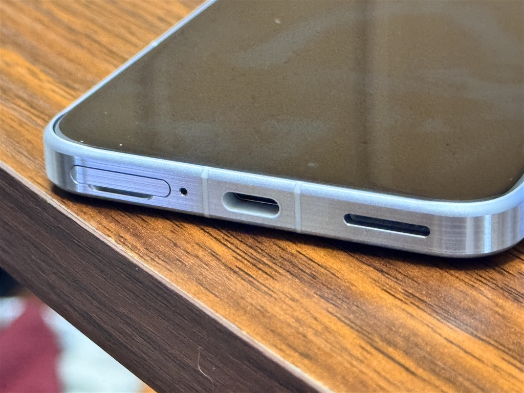 端末下部にUSB Type-C端子、SIMスロットが並ぶ