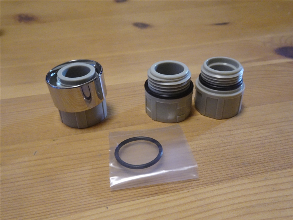 シャワーヘッドの付け替えは簡単。我が家は必要なかったが、3種のアダプターも付属