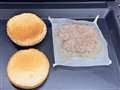 バンズとパティを焼いたところ。合わせてハンバーガーができる。 |