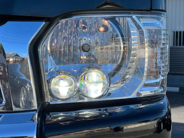 ハイエースワゴン GL バッドフェイス インナーブラックLEDヘッドライト 2インチローダウン シートカバー 415COBRAフロントスポイラー トヨタ純正ナビ プッシュスタート つやありエンブレム
