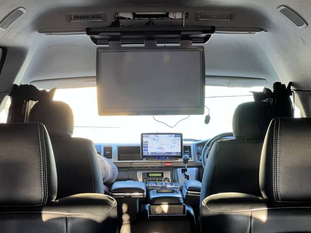 ハイエースワゴン GL FEELコンプリート シートカバー フルエアロ ローダウン 16インチアルミ ツインモニター リアモニター セキュリティ ウッドパネル ロッドホルダー