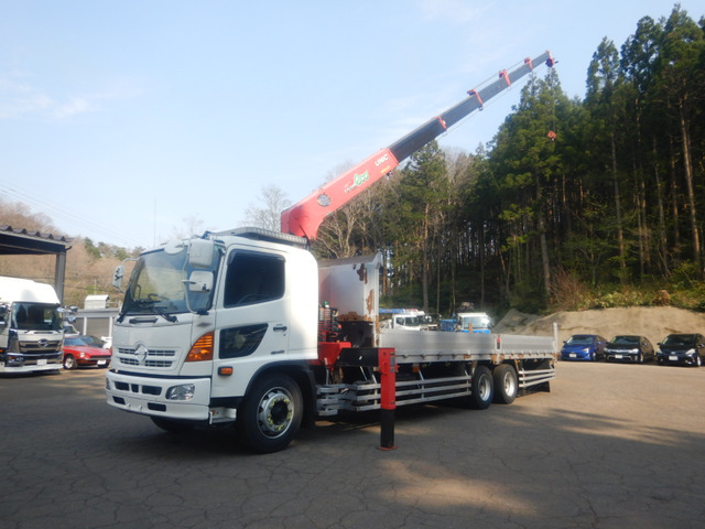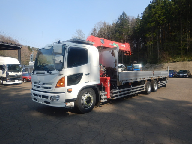 ご覧頂きありがとうございます。 【CH23009】H23年 日野 レンジャー 6段クレーン ラジコン&フックイン 2デフ アルミブロック 積載9300kg 税込!の出品になります。 車両情報を説明します。 *平成23年12月 日野 *型式 LDG-GK8JUAA *エンジン型式:J08E *排気量:7680cc *寸法:長さ 1095cm 幅 249cm 高さ337cm *最大積載量 9300kg *乗車定員 2人 *車検 一時抹消 *シフト MT6速 走行距離 508500km台 内寸775×240×40 中古車の為、外装やフレームにはキズや錆があります。現状販売なので購入希望の場合は現車確認お願い致します。 内装は運転席、助手席とも使用感が有ります。 あくまでも中古車の現状販売になりますので 細かいキズや内装に細かくこだわる方や神経質な方は入札をご遠慮ください。 *注意事項をよくご覧ください* *現車確認していただいている方を優先してます。現車確認無しでの入札、落札はトラブル防止の為、無効にさせていた…