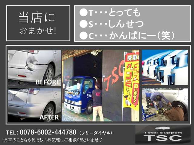 ■□■ 福山市の車屋さん【トータルサポートTSC】です! ■□■ ”ありがとう”の気持ちを忘れずに、お客様との繋がりを 大切にした一歩先のサービスを。 広島県福山市で車のご購入、板金塗装なら 【トータルサポートTSC】へご来店ください! ト…