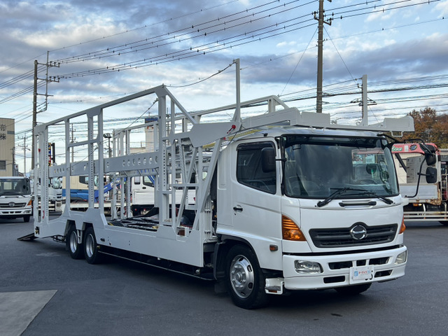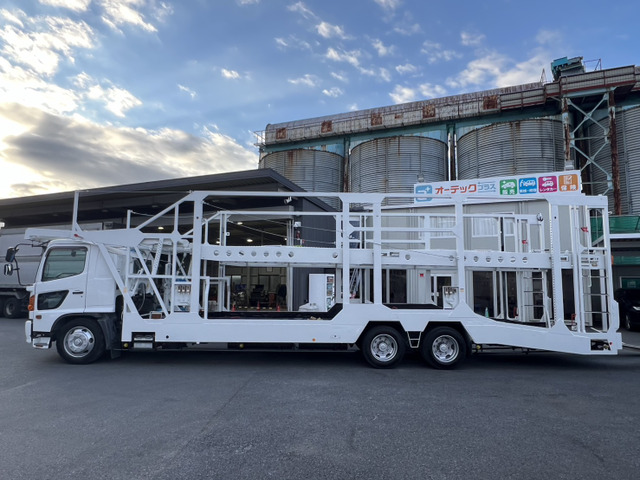 ご覧頂きありがとうございます。 ■この車への「お問合せ」・「無料見積り依頼」、「在庫確認」は、お気軽にどうぞ! ■この車両以外にも「車選びドットコム」におすすめの中古車を掲載しております。 他の在庫車種、お店へのアクセスは【販売店情報ページ】をご覧ください。 問合わせ・来店の際には「中古車情報サイト(車選びドットコム)を見た」とお伝えください。 店頭商談中・売約済の場合もありますので、ご来店の際は事前にお問合せ頂き、該当車両の有無をご確認ください。 ☆5台積みキャリアカー ☆外装仕上済 ☆最大積載量7700? ☆車輛総重量17870 ☆荷台中心部ギャップ9? ☆荷台寸法:上段長さ1050?幅230?下段:長さ967?幅230? ☆2デフ ☆6MT ☆リターダー付 ☆煤焼無し ☆J08Cエンジン 260馬力 スタッフ一同、お客様からのお問合せをお待ちしております。