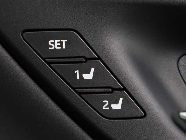 高級感のある黒本革シートとドアについているボタンを押すことで自分の好きな体制を設定することができる機能となっております!一度登録しておくことで書き換えない限り何度でも一番いい姿勢を再現できるとても便利な機能です!