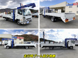 ◎令和6年式の登録済未使用車、三菱ふそう『ファイター増トン』架装たっぷり!ウインチ付の4段セルフクレーン・重機運搬車が完成いたしました!車両はワイド幅のベッド付、最大積載量は架装完了後で6.7トン取れております!エンジンは6M60の6気筒、力強い270馬力でご用意しました!セルフクレーンはタダノ新型ZXシリーズ『ZX364SLPHRSA』4段ブームの警報仕様!見やすい大画面の液晶ラジコンや、新型コントロールパネルには、吊り荷重や定格荷重表示があり、作業も安全に行えます!更に、クレーンのラジコンでも操作できる、巻上能力3トンのウインチも架装済!ボディ架装は、弊社コダワリの上野仕様!横根太13本増しや、リヤフェンダー上部に鉄板張り補強などの床下強化を始め、あゆみ掛けや床下あゆみ収納をリヤ側に架装した即戦力!もちろん、定番2.2mあゆみ板も1セットお付けしております!今回は鳥居を建替え、便利なアルミ縞扉付収納やキンネンフック掛けも架装!鳥居サイドにはガセット、床下にはアングルや鉄横根太等の補強もバッチリ!現車確認の際、場内試乗やクレーン操作もお試しいただけますので、お気軽にお問い合わせください!◎