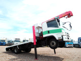 増トン!!積載7.1t!!ベッド付!!ワイド幅!!重機回送車!!ハイジャッキ!!フォワードの3段セルフクレーン角足差し違いアウトリガーラジコン付になります。