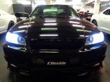 R34スカイライン25GTターボ4Dセダンボディ&R34GTR仕様フルエアロWORK19アルミ&RB25DETターボエンジンマフラーインターCラジエター他ドレスアップライトチューン仕様車が入庫しました