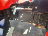 「ボディ下部錆止め塗装」 雪道には凍結防止剤を撒くことが多く、放置するとボディ下部が腐食していきます。これに対処するため、ボディ下部に錆び止めを塗ります。