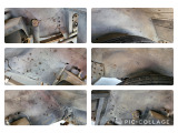 「ボディ下部錆止め塗装」 雪道には凍結防止剤を撒くことが多く、放置するとボディ下部が腐食していきます。これに対処するため、ボディ下部に錆び止めを塗ります。