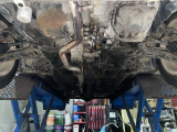 「ボディ下部錆止め塗装」 雪道には凍結防止剤を撒くことが多く、放置するとボディ下部が腐食していきます。これに対処するため、ボディ下部に錆び止めを塗ります。