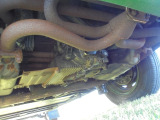 「ボディ下部錆止め塗装」 雪道には凍結防止剤を撒くことが多く、放置するとボディ下部が腐食していきます。これに対処するため、ボディ下部に錆び止めを塗ります。