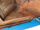 「ボディ下部錆止め塗装」 雪道には凍結防止剤を撒くことが多く、放置するとボディ下部が腐食していきます。これに対処するため、ボディ下部に錆び止めを塗ります。