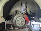 「ボディ下部錆止め塗装」 雪道には凍結防止剤を撒くことが多く、放置するとボディ下部が腐食していきます。これに対処するため、ボディ下部に錆び止めを塗ります。