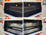 ◆前側:消火器収納、スペアキャリア、ほうき立て