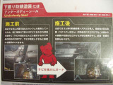 「ボディ下部錆止め塗装」 雪道には凍結防止剤を撒くことが多く、放置するとボディ下部が腐食していきます。これに対処するため、ボディ下部に錆び止めを塗ります。
