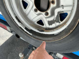 「ボディ下部錆止め塗装」 雪道には凍結防止剤を撒くことが多く、放置するとボディ下部が腐食していきます。これに対処するため、ボディ下部に錆び止めを塗ります。