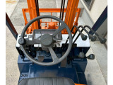 トヨタのディーゼルフォークリフトです。アタッチメントにヒンジが付いており、荷物をすくったり一気に下へ落としたりできますので、バケットを装着すれば砂や除雪も可能なタイプとなっております。タイミングによっては中古のバケットも販売可能な場合があります。落札前にお電話下さい。